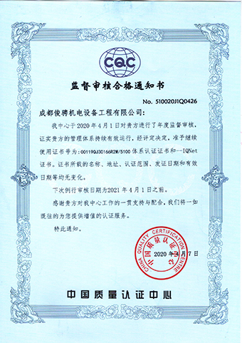 庆祝j9国际站官网入口公司顺利通过CQC年度监督审核认证