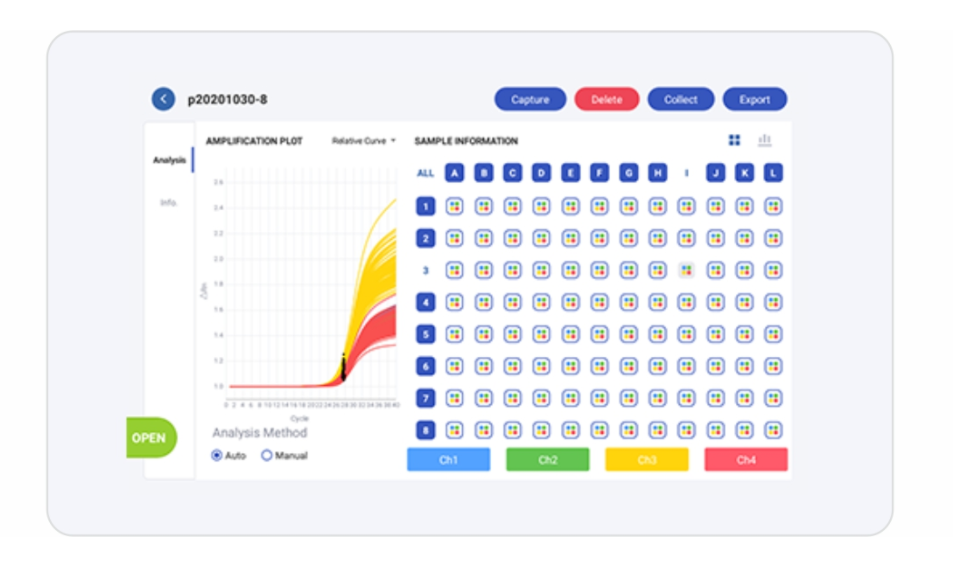 96孔荧光定量PCR检测仪, 全新热仓设计,独特控温技术,真实反应PCR管内液体温度,数倍提升实验结果的重复性和准确性。四?/六色荧光定量PCR;应用多芯玻璃光纤传导,3D逐孔扫描技术,无边缘效应和孔间差异,可轻松建立四重/六重荧光定量PCR。